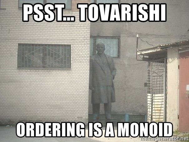 if you look closely at the orderingMonoid.concat you would notice that it can be implemented as a || b. Which means you can write this code while fully understanding how ordering is a monoid and why this works: